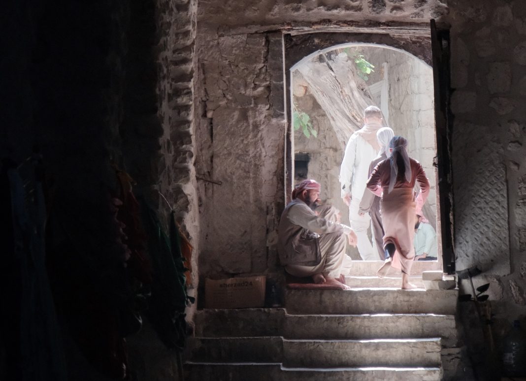 Os preceitos da sua religião criaram salas que para os nossos olhos são misteriosas, como aquela que atravessamos, em escuridão quase total, com ânforas de azeite de um lado e do outro.