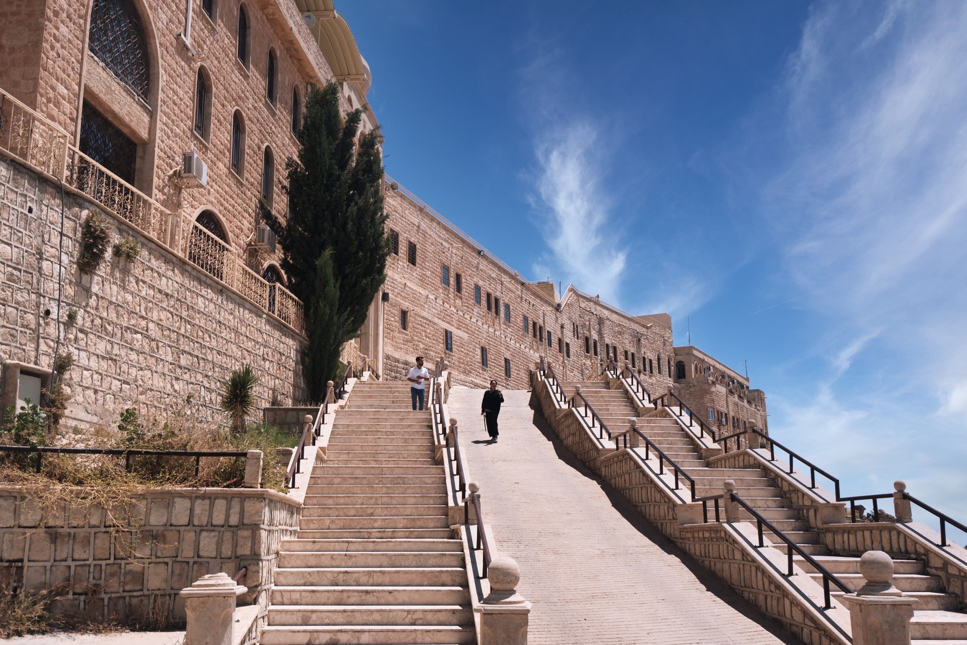 E começa formalmente a tour. Todos para o minibus e a caminho de Mar Mattei, ou Mosteiro de São Mateus. Há quem possa achar estranho que exista um mosteiro por estas paragens, mas é normal. Em vastas áreas do Médio Oriente existe uma sobreposição de Cristianismo e Islão e no Iraque passa-se isso mesmo.
