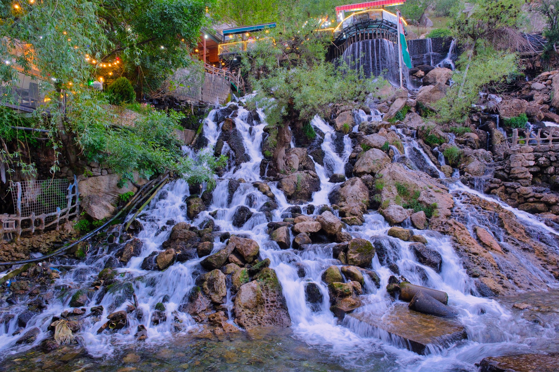 O dia rendeu, o plano foi cumprido dentro do horário previsto. Temos então tempo para visitar umas quedas de água transformadas em popular atração turística. Acorrem famílias inteiras, uma multidão que alimenta dezenas de pequenas lojas agrupadas ao longo da via que conduz ao curso de água.
