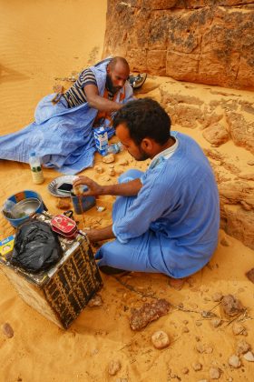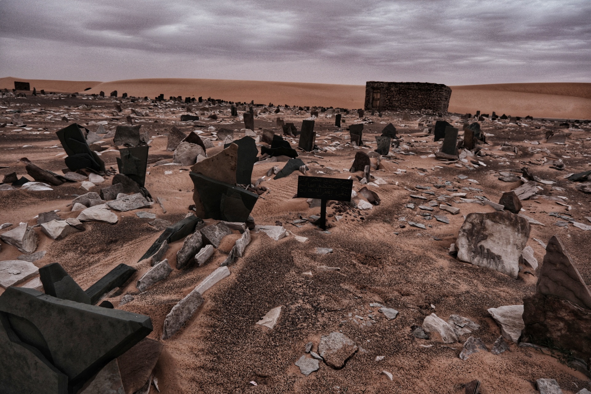 Chegamos a Tichit já ao fim do dia. Paramos um pouco antes para observar um cemitério, com as campas semi-enterradas na areia. A luz vai escasseando, o céu fica carregado. Apetece descansar. Aqui, em Tichit, vamos encontrar as condições mais básicas de toda a viagem. O quarto é basicamente uma cela com um colchão no chão e uma casa de banho com uma sanita turca com um cheiro forte. Mas foi divertido.