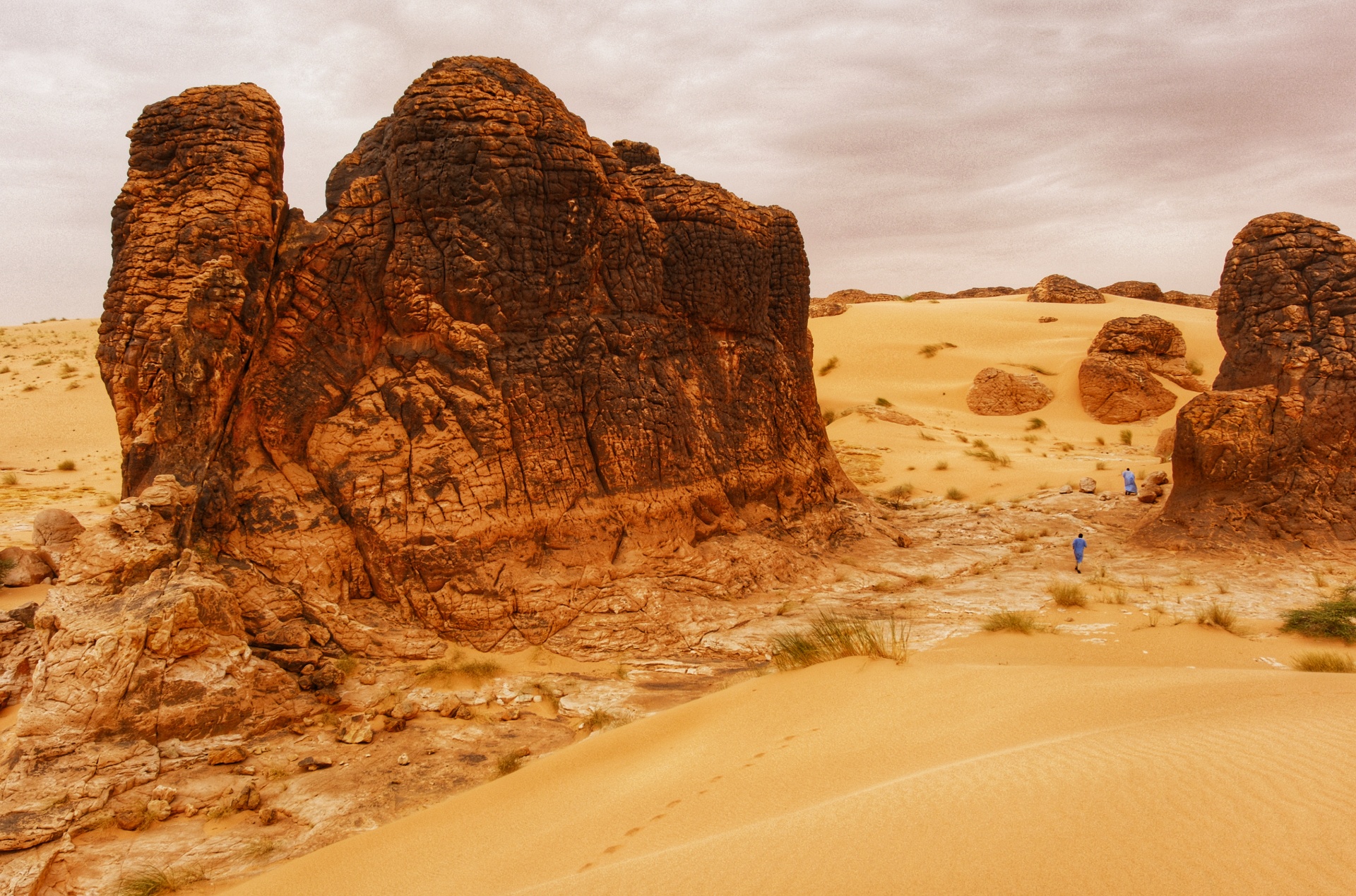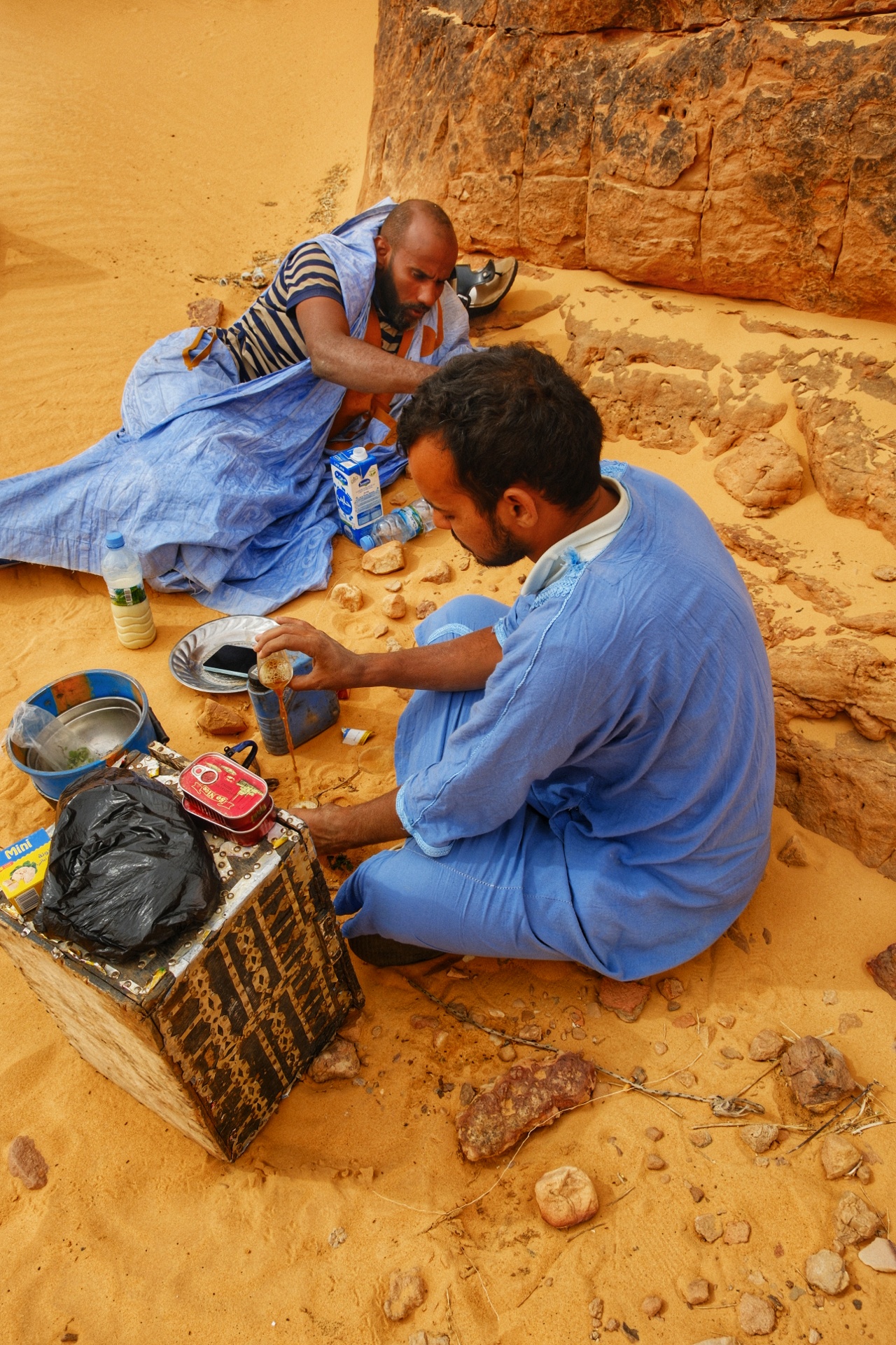 Hoje foi um dia de muitos caminho e pouco lazer. Mas valeu! O Rocher de Makhrouga é uma maravilha geológica que deixa qualquer um fascinado. Encontra-se junto ao trilho que liga Oualata a Tichit. Este, está marcado como uma estrada no Google Maps, mas na realidade não é nada mais do que puro deserto com umas marcas de rodados, que mesmo assim apenas são visíveis a espaços. O resto fica entregue ao nosso génio da navegação em deserto, o homem ao volante, o incrível Havel.