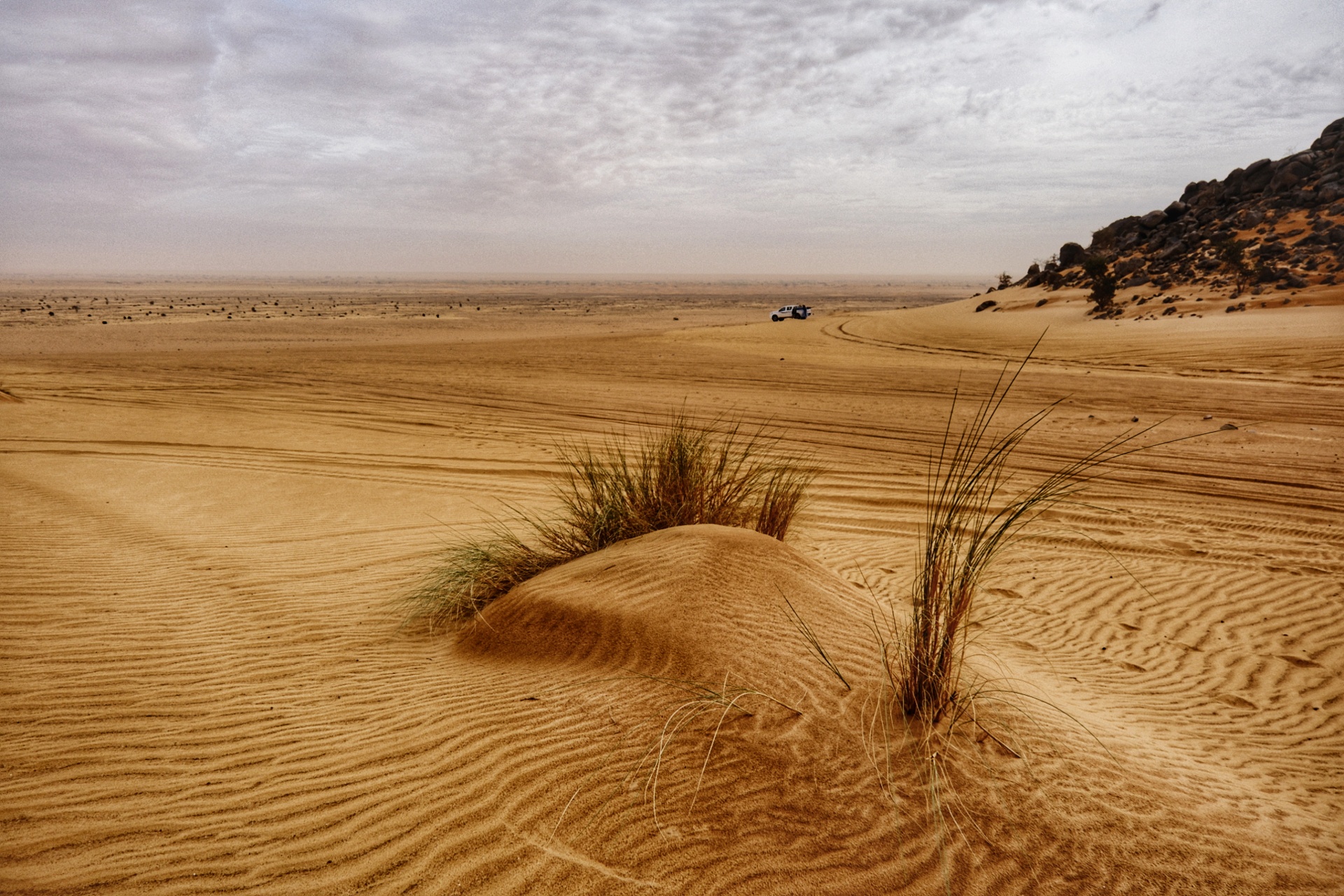 Entretanto parámos num ponto de perfeito deserto, com dunas douradas a perder de vista. Mais uma série de fotos.